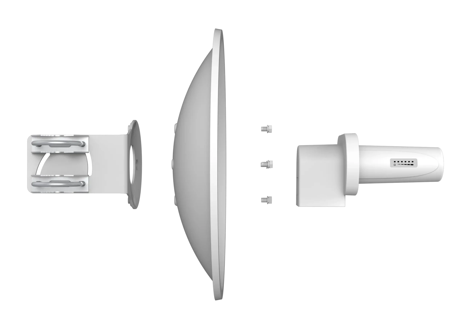 - Integrated 23dBi dual-polarized dish antenna with a maximum range of 20 km.